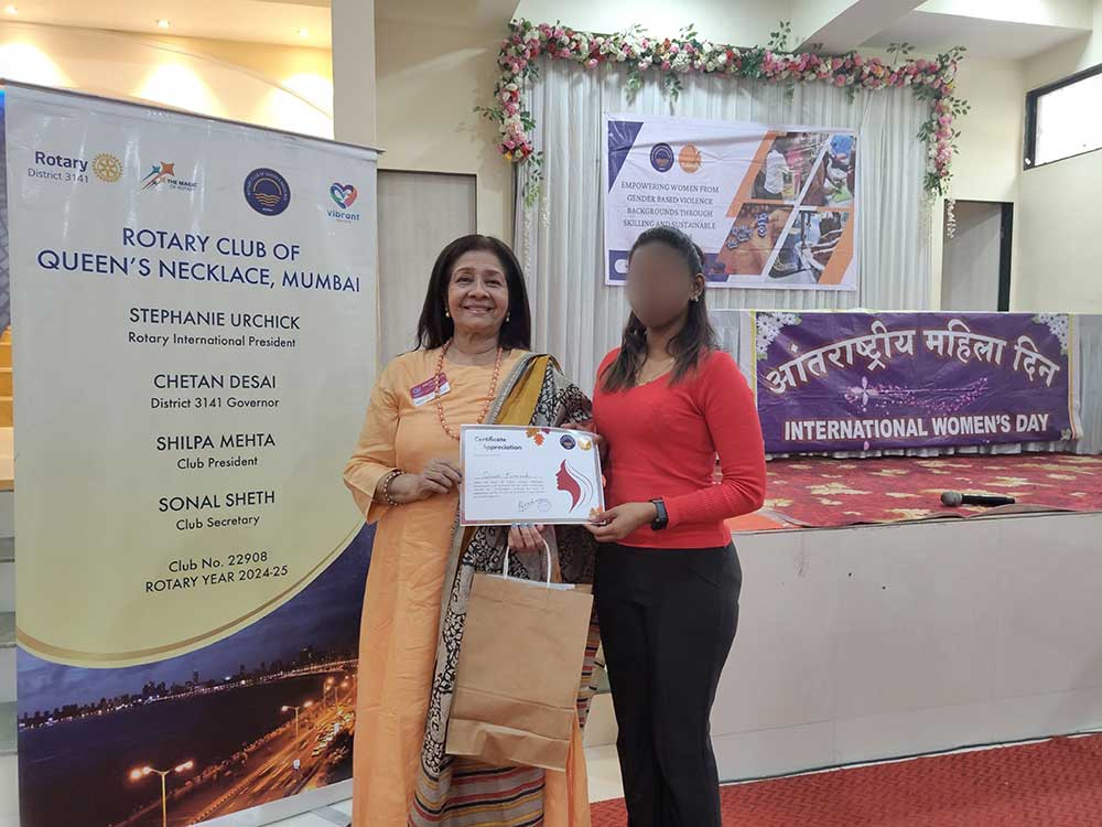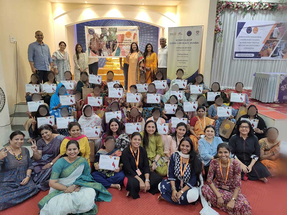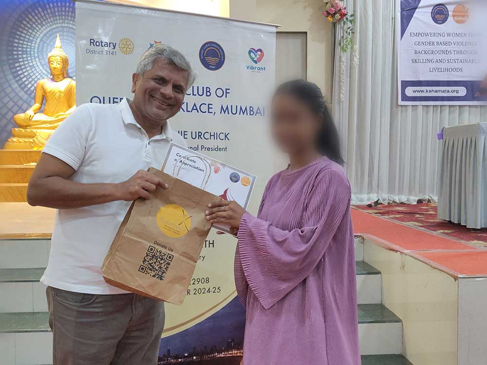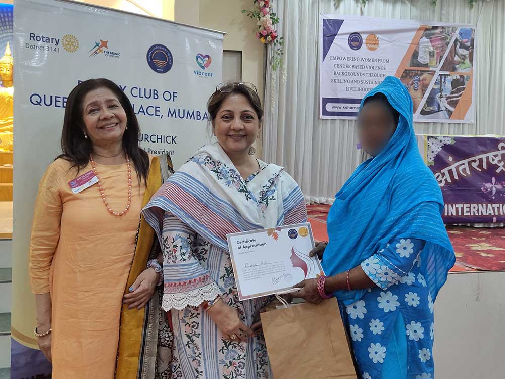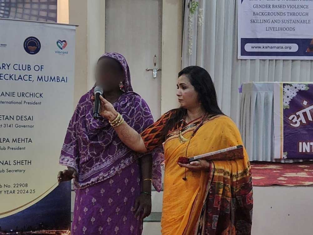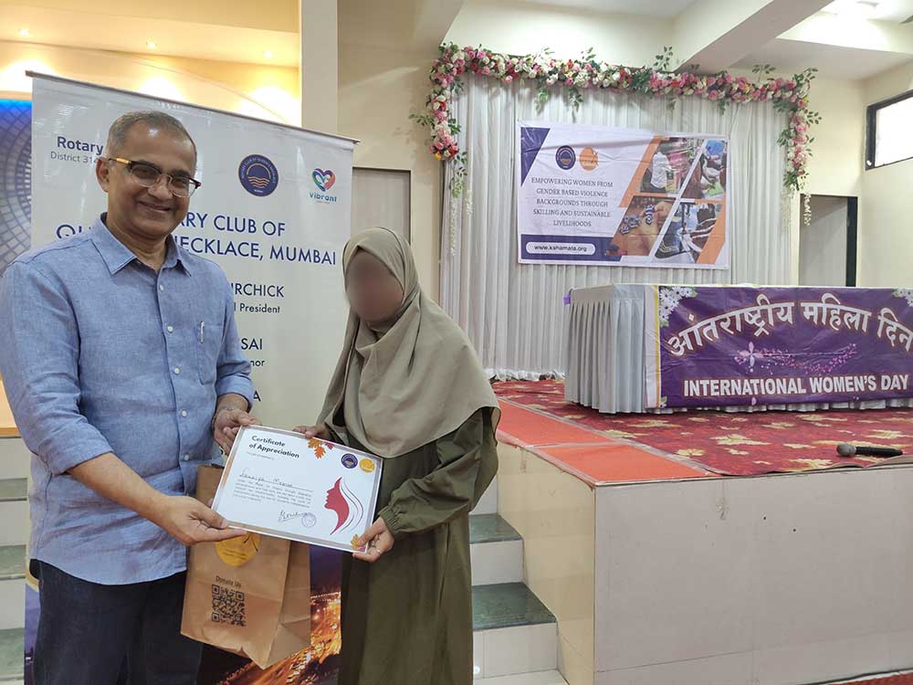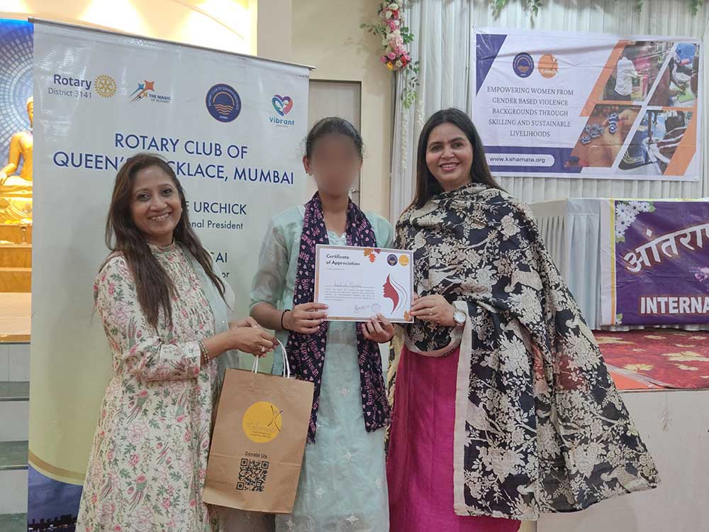 The Rotary Club of Queens Necklace Mumbai (RCQNM) played a key role in supporting these women on their journey to financial independence. Their collaboration has been instrumental in providing essential skills and livelihood opportunities. During the event, the RCQNM team was present, appreciated the women’s resilience and trust in Kshamata, encouraged them to continue their progress, and extended their best wishes for a successful future. They also took the time to listen to the women’s experiences and addressed any challenges they are facing.